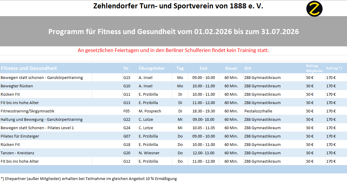 Teilnahmebedingungen: Berliner Schulferien sind trainingsfrei.